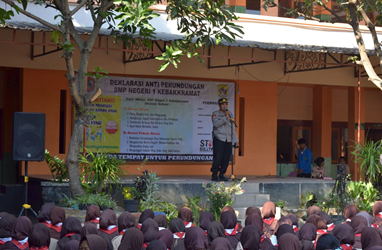 Diawal acara, Pak Ridhwan memberikan sosialisasi tentang kenakalan remaja dimasa sekarang. Beliau memberi tahu tentang apa saja tindakan yang termasuk bullying, contoh bullying yang kemungkinan besar ditemui dikehidupan sehari-hari seperti menjelek-jelekan nama orang tua dan juga memberikan nama sebutan yang tercela untuk temannya. Pak Ridhwan juga dengan tegas menjelaskan konsekuensi dari bullying dalam pandangan hukum dan juga ilustrasi dari kasus pembullyan supaya siswa-siswi SMP Negeri 1 Kebakkramat tidak melakukan hal serupa.