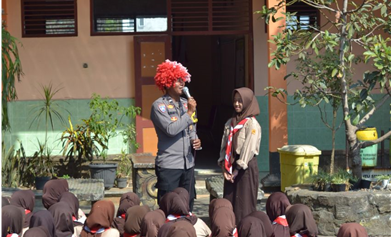 Di akhir sosialisasi, datanglah Pak Ranto yang menggunakan rambut badut dengan penampilan gagah sekeligus membawa tawa riang dari siswa maupun siswi. Dengan senyum menawannya Pak Ranto menyapa para siswa dengan ramah dan juga dengan nada bersemangat. Beliau berhasil menghibur suasana pada saat itu yang mulai panas dan gerah kemudian suasana menjadi penuh tawa dan canda.