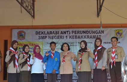 Adapula menanda tangani perjanjian deklarasi anti-bullying diakhir acara yang ditanda tangani oleh beberapa guru, yaitu Ibu Dra. Sri Lestari, S. Pd., M.Pd. selaku kepala sekolah, Bapak Sudarto S, Pd. kemudian Bapak Saino, S. Th. lalu, Bu Hartati Hadiningsih dan juga teman kita Jerian Whisnu Kusuma Putra sebagai wakil siswa dan siswi SMP Negeri 1 Kebakkramat. Demikian acara kala itu benar-benar menambah wawasan dan juga pengalaman.