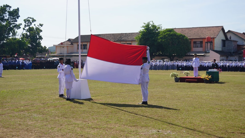 Pukul 8.50 pagi, upacara penaikan bendera sang saka merah putih dimulai dengan khidmat. Komandan Paskibra Aldion Bintang dan Gabriella memimpin jalannya acara secara tertib. Adinda, salah seorang siswi SMPN 1 Kebakkramat, dipercaya sebagai pembawa baki bendera yang akan mendampingi prosesi penaikan dan penurunan bendera merah putih.