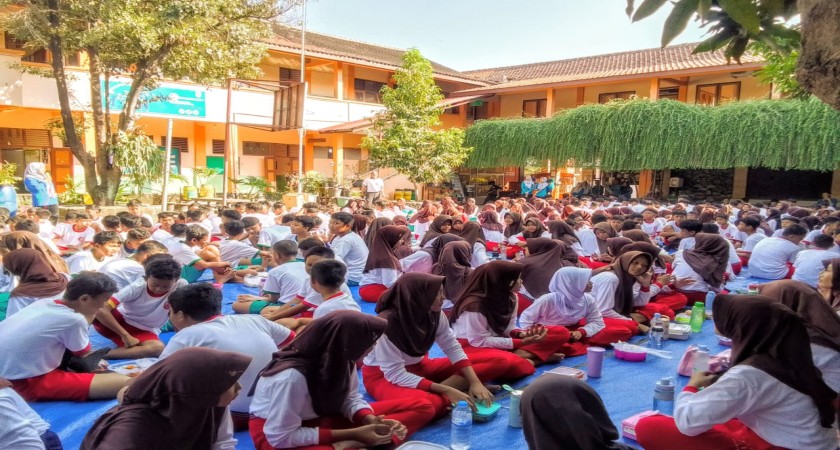 Dilanjutkan acara selanjutnya, setelah senam sehat semua siswa dan siswi serta guru guru diharapkan berkumpul dihalaman untuk melaksanakan makan sehat dengan membawa bekal dari rumah dan menggunakan menu makanan 4 sehat 5 sempurna. Semua siswa diharapkan untuk berdoa terlebih dahulu sebelum makan. Menu maknan yang dibawa oleh semua siswa berbeda beda. Kegiatan GABS ini merupakan kegiatan yang dilaksanakan untuk meningkatkan kesadaran siswa siswi dalam membiasakan diri untuk mengonsumsi tablet tambah darah dengan rutin, makan makanan yang bergizi seimbang, dan aktuvitas fisik.
